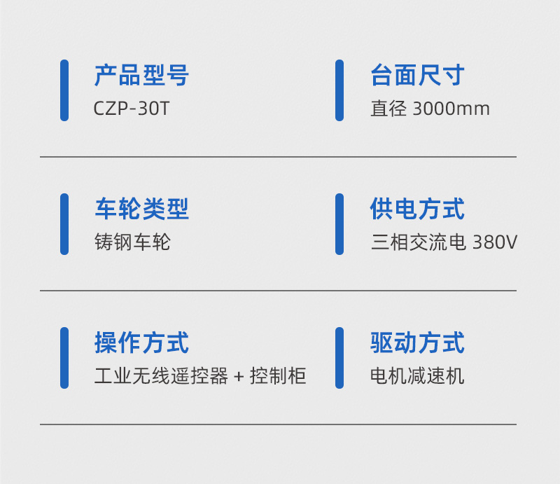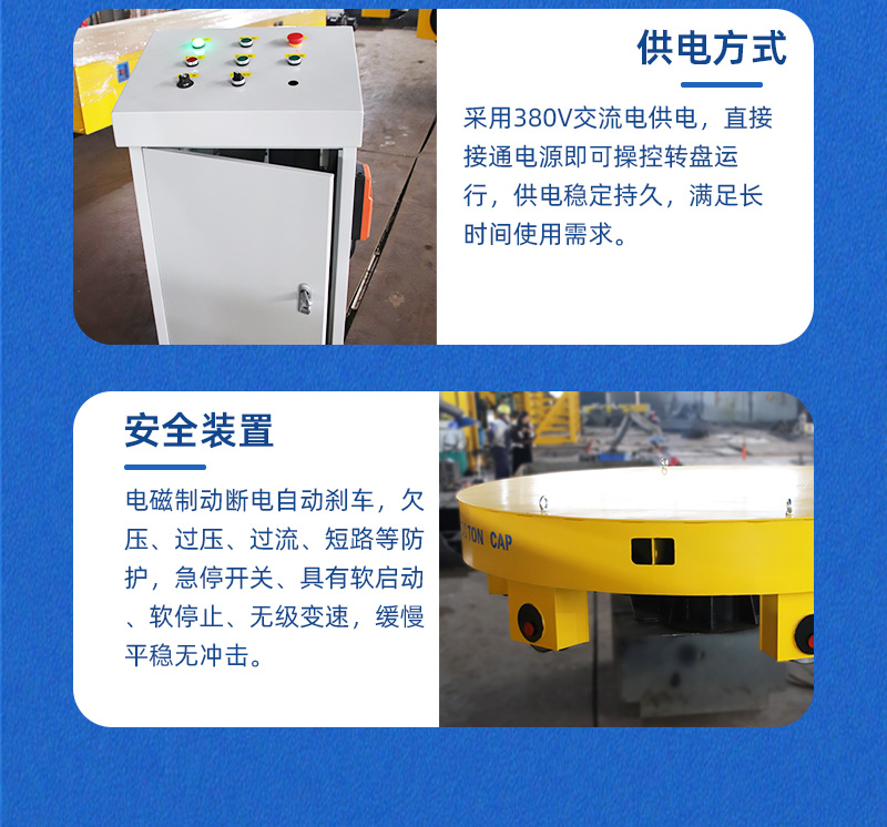 描   述: 大型重載電動轉盤,直徑3米額定載重30噸,主要用于大型設備的裝配及零部件的搬運,三相交流電380V電源供電,滿足全天候連續作業需求,它可以輕松承載各種重型零件,并將其***地旋轉到所需的位置,協助工人將各種部件組裝,確保加工精度及效率。