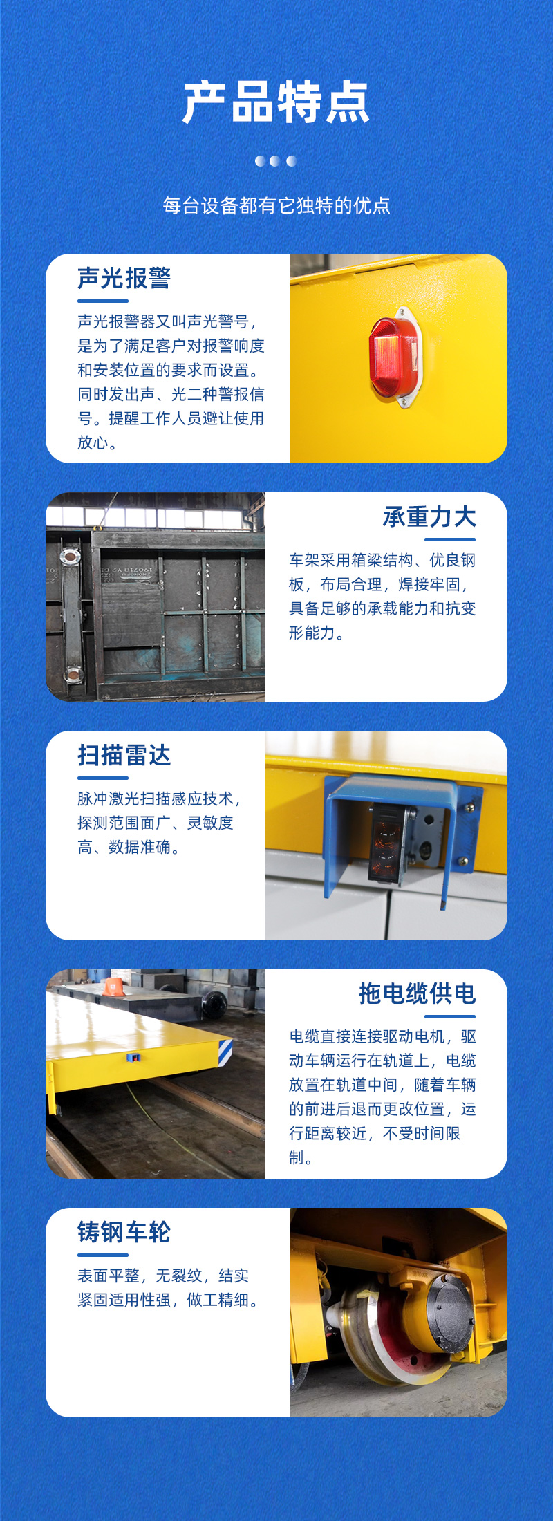 工件轉(zhuǎn)運(yùn)拖電纜軌道搬運(yùn)車 24小時(shí)不間斷作業(yè)