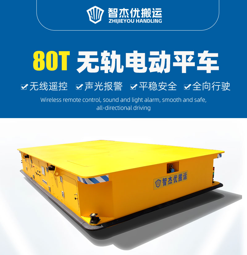 80噸電動(dòng)搬運(yùn)平車,超大臺(tái)面設(shè)計(jì)大載重,可一次搬運(yùn)大量貨物,適合于大體積大重量物料搬運(yùn),電動(dòng)平車主體用的質(zhì)量好的鋼材組裝焊接,制圖規(guī)范設(shè)計(jì),整體采用箱梁式幾何結(jié)構(gòu)可承載大重量的物料,大容量大密度儲(chǔ)能電池供電,通過電器轉(zhuǎn)換給電動(dòng),低壓供電可增加減速機(jī)的使用壽命,電動(dòng)平車制動(dòng)有電磁、機(jī)械等剎車方式,鑄鋼輪外包聚氨脂車輪不需要充氣防刺耐磨易保養(yǎng)和維護(hù)。可無線搖控和有線手柄控制電動(dòng)平車前后行走、左右行走、原地旋轉(zhuǎn)等;電動(dòng)平車具有聲光報(bào)警、激光感應(yīng),遇到障礙自動(dòng)停車;儀表實(shí)時(shí)顯示電量使用情況,電器內(nèi)部多重保護(hù)有效避免過載、欠壓、過流等因素造成電器元件故障根據(jù)工況條件可定制特殊結(jié)構(gòu)、載重500噸以下的機(jī)型。