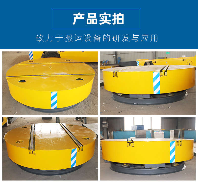 軌道轉(zhuǎn)盤要滿足軌道平車承重量,智杰優(yōu)用的材料都較厚的鋼板經(jīng)過科學(xué)的幾何設(shè)計使得軌道轉(zhuǎn)盤有較大的承重能力;軌道轉(zhuǎn)盤盤面向下是能夠行駛在圓形軌道的鑄鋼車輪可以將盤面旋轉(zhuǎn),實現(xiàn)軌道平車變換方向;軌道轉(zhuǎn)盤會用較多的保障安全的電氣元件,例如:急停開關(guān)、過載/欠壓/過流等保護;軌道轉(zhuǎn)盤會用到電機減速機、電磁制動器件等。智杰優(yōu)可以根據(jù)你的工況條件來量身定制各種規(guī)格、款式的軌道轉(zhuǎn)盤,歡迎您來電洽談。