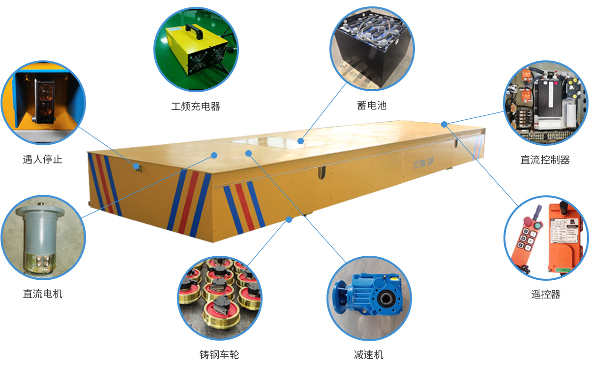 CXG系列是蓄電池供電的電動平車,是由蓄電池提供電源的轉運車,蓄電池安裝在車體內部,電源通過電器控制系統,給直流牽引電機提供電力,使轉運車平穩啟動、停止、前進、后退、調速等。該系列電動平車能夠在垂直的軌道、L型軌道、S型軌道、弧形軌道及易爆、擺渡場合使用;平車上可以加裝液壓升降系統,平車直流電機啟動平車、啟動力大、對減速機沖擊力小、電壓低、使用壽命長等優點。相對于其他電動平車來說,其運行距離不受限,軌道鋪設要求也不高,適用于各種運輸場合。但蓄電池需要定期維護。由于蓄電池容量有限,其使用時間受限。